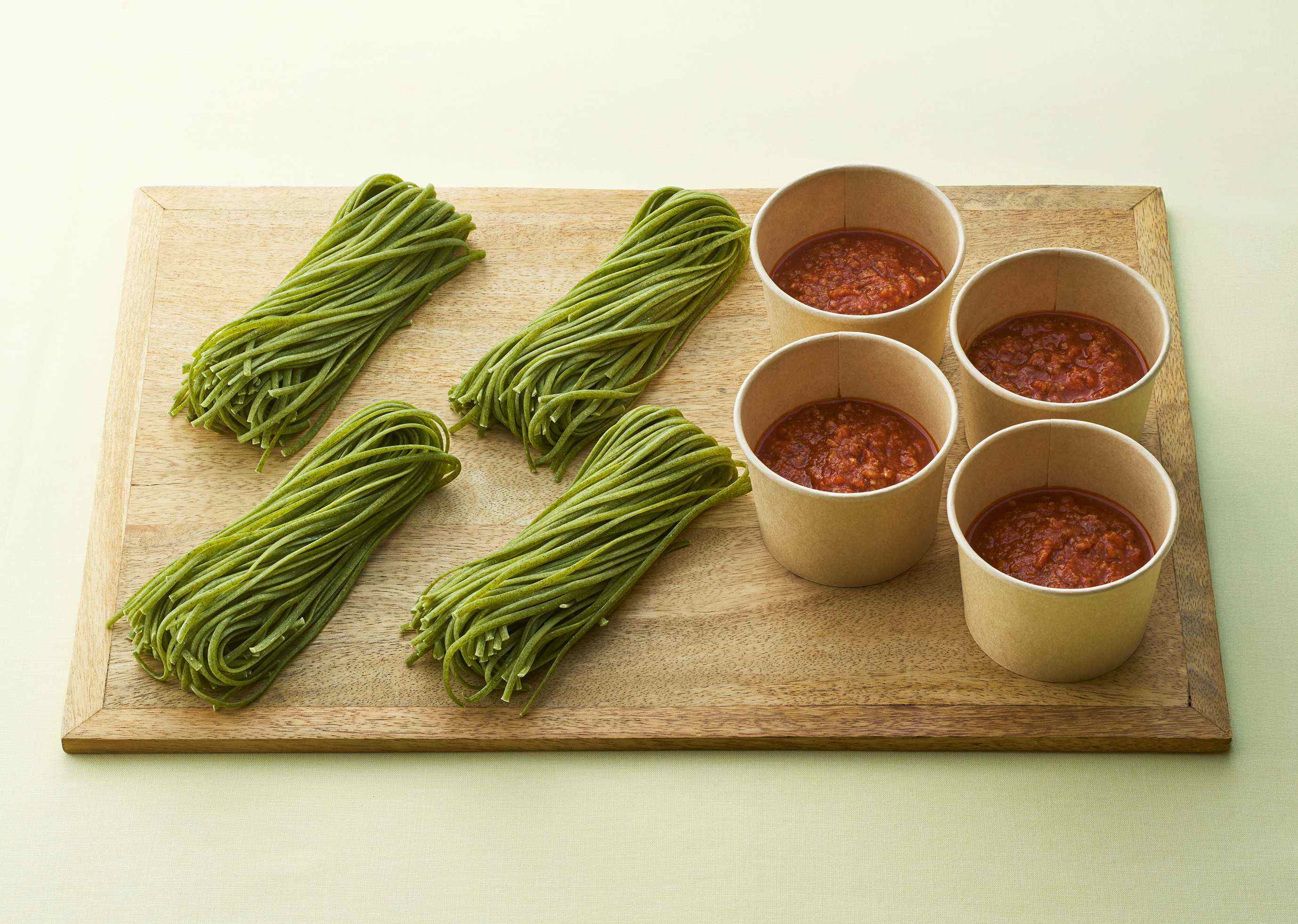 船橋出身のシェフと地元漁師/農家さんとのコラボ商品。 船橋漁港で水揚げされたコノシロのお魚ミートソースと船橋名産小松菜を練り込んだ生パスタ。全員の顔が見える船橋オリジナルの逸品です。