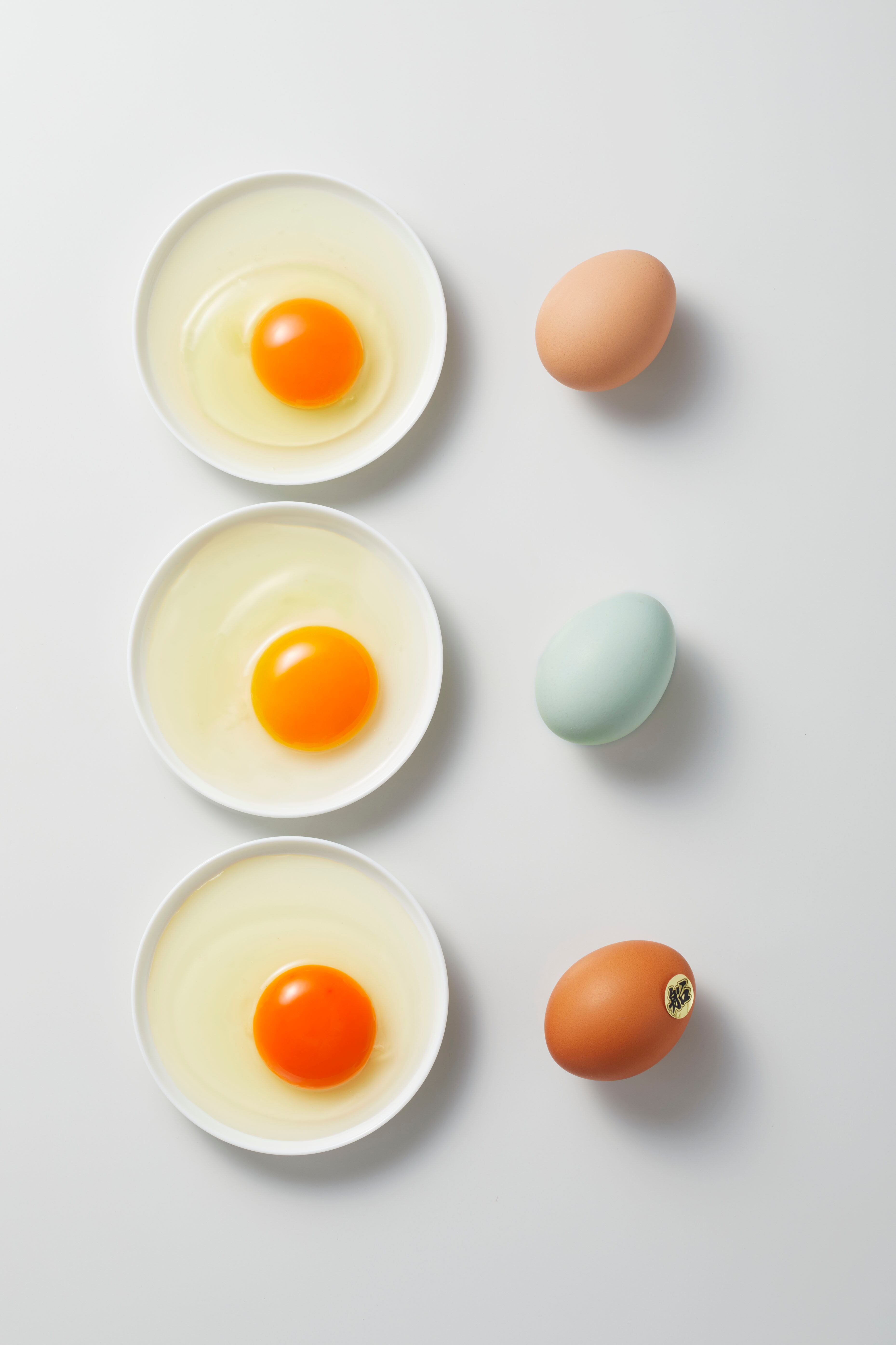 鮮やかなオレンジ色の黄身は濃厚かつコクと甘みがあり、粘り強くくさみのない卵です。