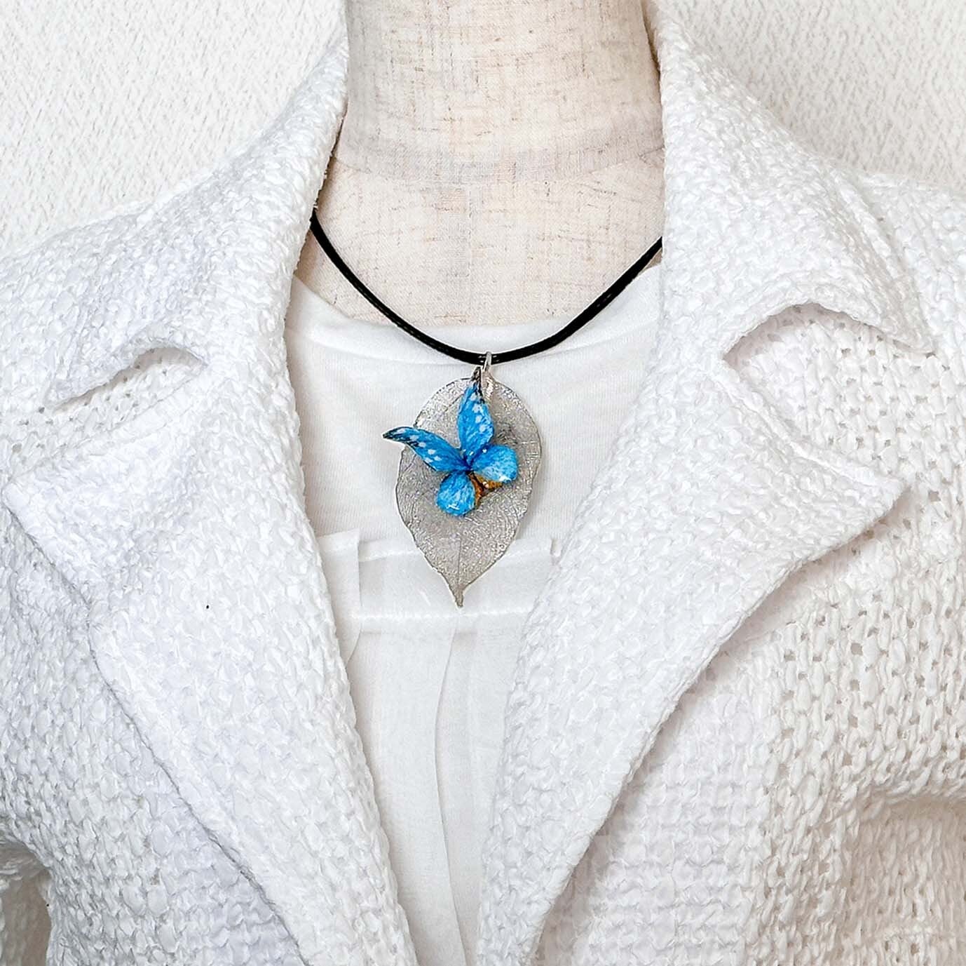 ヘレナトルコブルー蝶のデジタル蝶 革ひもネックレス付き